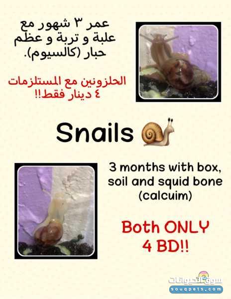 بيع حلزونين افريقي عمر 3 شهور مع علبة و تربة و عظم حبار كالسيوم