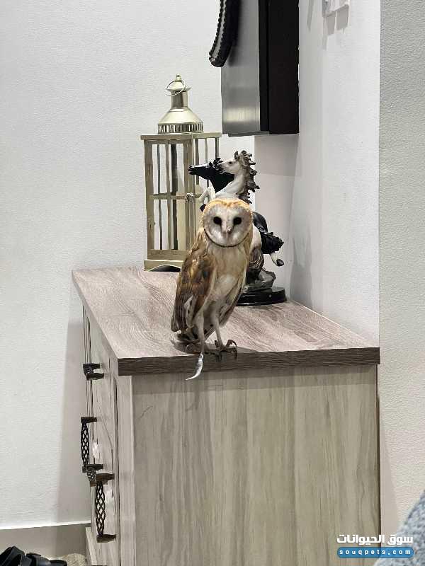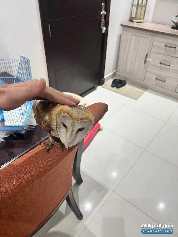 للبيع فرخ بومة نوعة بومة حظائر او بومة الهامة العمر ٣ شهور اليف جدا ولا يسبب اي مخاوف للاطفال هادئ